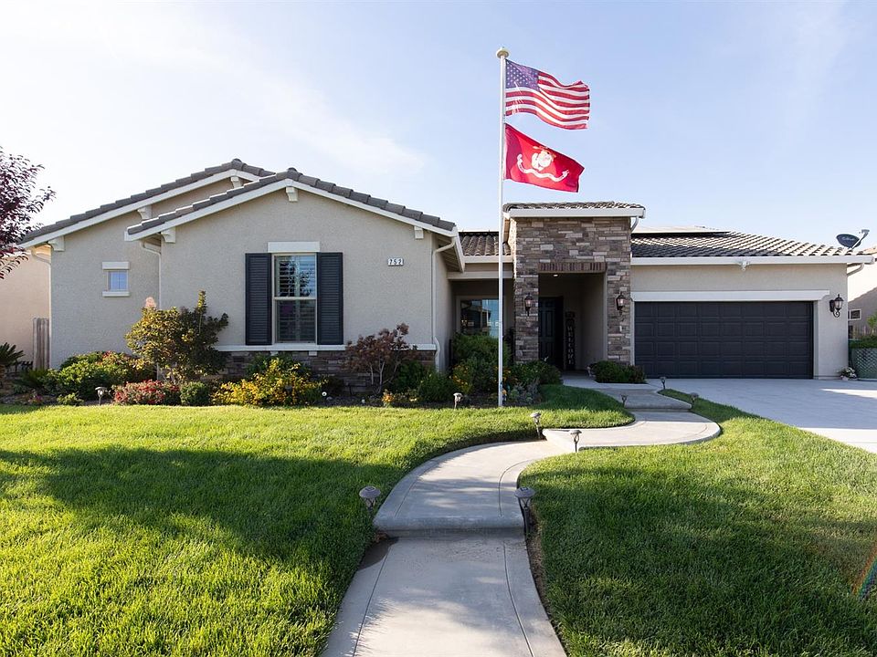 This Fowler Beauty Woodside built home has it all. 4 Bed 3.5 Bath. Custom designer paint colors The home has tile floors throughout along with carpet in all bedrooms. Walk-in closets in every single bedroom. As you walk in you are greeted by grand 9 ft doors and 10 ft ceilings complete with recessed lighting and ceiling fans in every room. The plantation shutters are a very nice touch. The kitchen is well appointed with granite countertops, custom tile backsplash and a 5 burner gas stove will make quick work of family dinner time. Eat in kitchen with large window overlooking the backyard. Built in desk and office area just outside of the walk in pantry plenty of storage. The mother-in-law suite is private and comes with its own bathroom. Rich warm wood tones cabinets in living room. Tile inlay surrounds the informal dining room. The huge master with ensuite will be sure to please. Separate vanities, shower, tube, water closet room and walk-in closets with built in storage. Glass double doors enter into the flex room. Game room, study, den or office. Laundry is nice sized with cabinets for storage folding area and a sink to boot. Double sinks in the kids bath and both bedrooms have ceiling fans. Linen closet in the hallway. Sprinkler system throughout the home for safety. Extra concrete in the backyard,fenced dog run. Potential RV parking and 18 solar panels on the roof. Tankless water heater and water panel. 2 Car garage with extra cabinets. Make your appointment today!