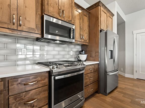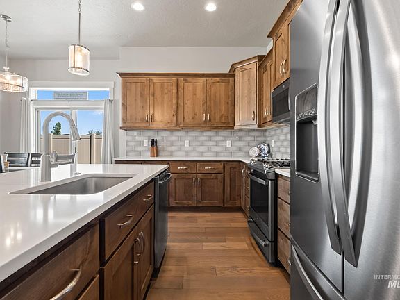 ASK ABOUT LENDER PROMO! Welcome to your dream home, ideally situated on a quiet cul-de-sac in Kuna. Inside you are greeted with tall ceilings, hardwood floors, and an abundance of natural light. The spacious kitchen boasts stainless steel appliances, quartz countertops, and a generous island ideal for entertaining and everyday living. The adjoining dining and living areas flow seamlessly for a warm and inviting atmosphere. The primary suite offers a walk-in closet and a private en-suite bathroom featuring a dual vanity and walk-in shower. Two additional bedrooms and a full bath provide ample space for family, guests, or a home office. Enjoy a fully fenced private backyard with room to garden, play, or just relax under the Idaho sky. The oversized 2-car garage adds convenience and extra storage. Located just minutes from schools, parks, walking paths, local amenities, with just a short drive to downtown Meridian and Boise.