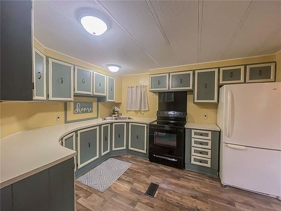 Great location-Vista Villa Estates, close to Route 8 & 228. Home features garage w/electric, oversized driveway, shed, and screened patio with scenic views of the rural landscape. Notice the updates when you enter the spacious living room with new laminate flooring (2021) & freshly painted interior-appealing palette! Storage galore! Nicely sized kitchen/dining combo with multiple gathering areas including breakfast bar, nook, and space for dining set. Lots of counterspace for a coffee bar, along with ample cabinetry. MBR features step-in closet. Inviting updated bath features a new vanity (2021), stand-up shower & garden tub. 2nd BR perfect space for guest or an office. Move-in READY! Laundry space with storage options! Bright & natural throughout. After a long day, retreat to the rear of the home for amazing valley views. (3) Window AC Units (2y young) included. Hot water tank-2019. Furnace replaced 5 years ago. $350 lot rent includes water, sewage, trash, and road maintenance.