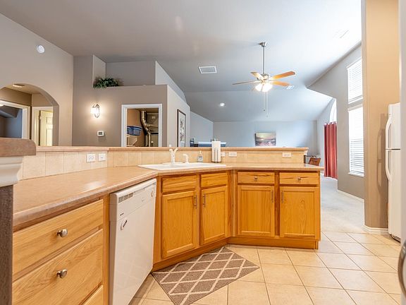 • Ceiling Fan(s), Garden Tub/Roman Tub, Kitchen/Dining Combo, Laminate Counters, Main Level Primary, Vaulted Ceiling(s), Walk-In Closet(s), Walk-In Shower