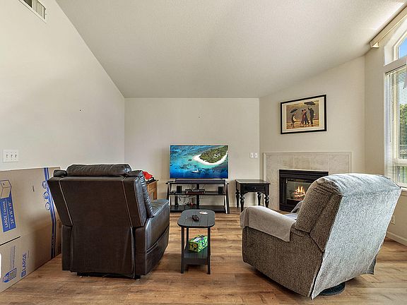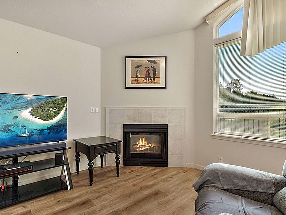 Amazing views of Quail Point Golf Course and surrounding mountains from the deck of this condo in Hilldale Estates 55+ community. You'll find an open concept living area with vaulted ceilings, gas fireplace, convenient kitchen with tile countertops and lots of light wood cabinetry, large master suite with a walk-in closet and slider to the deck. All kitchen appliances stay, as well as the TV mounted on the wall of the primary bedroom. An incredible amount of natural light, nice laminate flooring throughout and much more storage than expected. This community affords end of the road privacy with almost no traffic and close proximity to shopping and medical services. Seller is motivated!