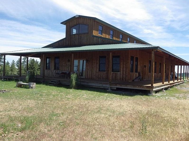This is a very nice barn that would make an amazing shop/studio with a 3 car built in garage. The building is 44x90 in total, includes the 44x30, 3 car garage and an 650 sf loft . Three sides are covered over plank decking. Good well, round corral, small barn/loafing shed. Frost freeze waterers, 120 acres crosses road and both sides fenced. Views of crazy mountains are unparalleled from front deck. Large loft & laundry Room/Bath. Close to National Forest. Contractors bid on file to complete.