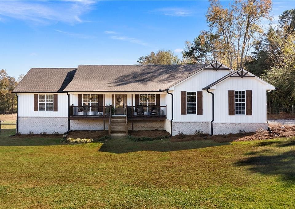 Welcome to Your Private 5-Acre Country Retreat!  Tucked back off a long, private drive, this charming four-bedroom, two-bath ranch home offers peace, privacy, and plenty of space to live your best country lifestyle. The property is entirely cross-fenced, making it ideal for pets, livestock, or simply enjoying the wide-open spaces.  Inside, the home boasts engineered hardwood floors throughout and a well-appointed kitchen featuring white cabinets, stainless steel appliances, and a stylish brick backsplash. The split-bedroom floor plan ensures privacy, while a formal dining room and a flex space—perfect for a playroom, home office, or bonus room—add versatility. The home’s updates include a new front porch, new gutters, and new vinyl siding. With a roof only six years old, this home is ready to welcome you for years to come. Outside, the property shines with a mini barn featuring two stalls and a mobile home hook-up with water and septic, offering endless possibilities for guests or rental income. This property provides the perfect combination of functionality, charm, and privacy—don’t miss your chance to own this unique slice of country paradise! Schedule your showing today!