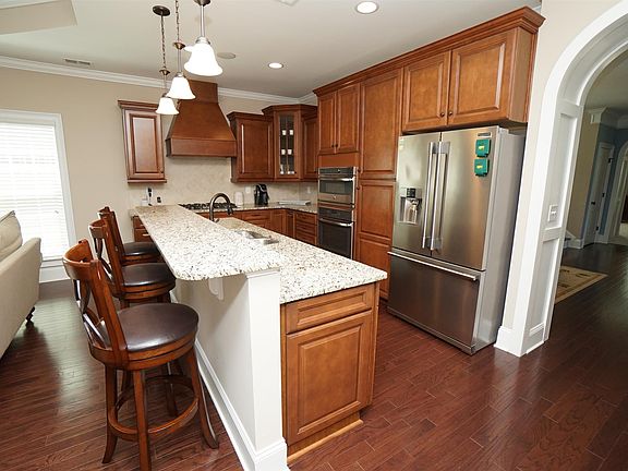 - RoomKitchenFeatures: Granite Counters, Recessed Lighting, Eat-in Kitchen, Floors-Hardwood, Cabinets-Stained, Backsplash-Tiled