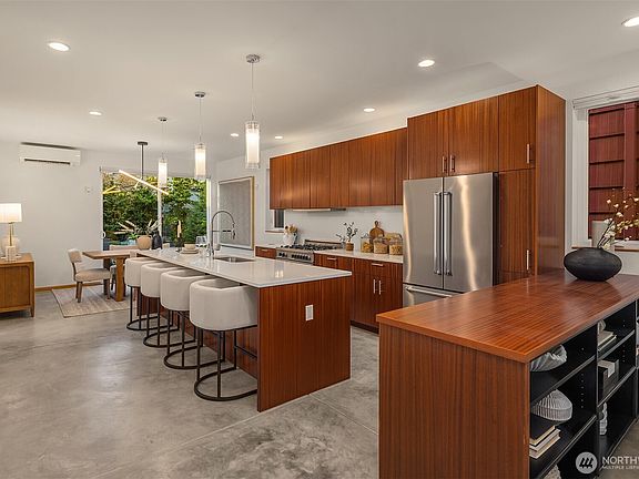 Modern designer home perfectly situated between Phinney Ridge and Green Lake! Enjoy an ideal layout with all bedrooms conveniently upstairs, leaving the main floor open, bright, and perfect for entertaining or relaxing. Flexible floor plan offers great work-from-home options. Sleek, updated finishes throughout with smart home features, clean lines, and oversized picture windows that flood the space with natural light. Thoughtfully designed outdoor areas, turf, greenhouse & a private garage + alley parking. Just steps from Green Lake, plus many premium upgrades already done. Remodeled garage insulated with heat, a window, AC, and an EV charger, upgraded power, interior paint just done too.  Quick access to HWY 99 & I-5 for easy commuting.