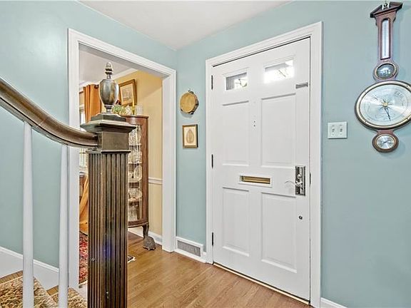 Gracious brick Colonial in a sought after Mt. Lebanon neighborhood! This well maintained classic has beautiful hard wood floors throughout. Center hall leads to lovely DR and spacious LR with FP and access to large covered slate patio, perfect for relaxation or entertaining. The well appointed kitchen features abundant cabinetry and counterspace, pantry, small breakfast bar, cork flooring and rear yard access. A pretty cedar storage window seat greets you at the top of the stairs. All BRs have 6-panel doors and lots of natural light. Master has attached BA with walk-in shower. A second full BA is located in the hallway. The basement family room is a welcome addition with brick walled, gas FP with remote. Built-in book shelf supplies nice storage. There is an adjacent powder room and a large laundry/storage room with small work bench. The beautiful rear yard has a nice flat section with stairs to upper level. Totally fenced! Close to all shopping and major road access!