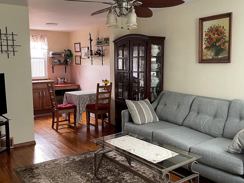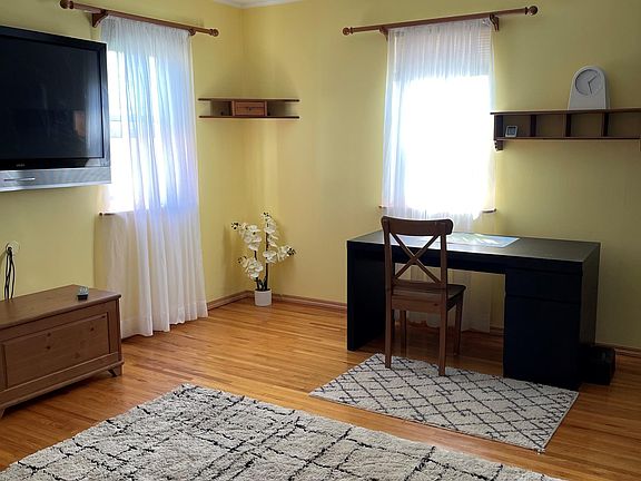Beautiful two bedroom duplex located a minute from bus stop to NYC and steps from train station. Two full bathrooms, garden and deck. Central AC and heating, hardwood floor. Laundry with connection to washing and drying machines. Small pets permitted. Small pets permitted