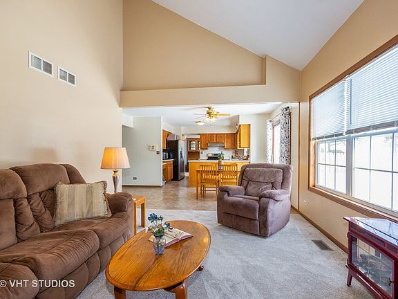 This is one home where everyone feels comfortable and welcomed - the covered porch sets the vibe! Located on a corner lot, in a cul de sac, you will discover many new upgrades including fresh paint, new carpet throughout, new flooring in the kitchen and laundry rooms, a new furnace, new a/c, new humidifier and a new air purification system. The roof was new in 2009 and all but 6 windows have been replaced and the backyard is fenced. The basement is finished with a work area, recreation area & plenty of storage space. The first floor has a brick fireplace in the vaulted family room, a separate laundry room and a kitchen that opens to the eating area that looks out to the backyard. The dining room has plenty of room for everyone to gather & the living room is spacious. This home is walking distance to downtown Oswego with shopping and restaurants nearby. You can even see the local elementary from the kitchen window! Welcome home!