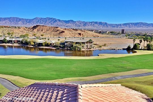 Views, views, & more views! Hard to find single-story home in the Pinnacle subdivision, 2390 SF, located on the signature 18th hole of the Palmer Golf Course with its incredible rolling fairway and water feature. This 3 Bedroom home provides plenty of room to entertain both inside, with 2 large living areas, as well as outside from the large extended, covered patio. Enjoy the stunning mountain views from the large great room, dining, & kitchen areas. This home is beautifully appointed with a newly, customized shower in the master bath, newer carpets, & upgraded, newer appliances (all included) . The vaulted ceilings are a delightful, architectural feature, highlighted by the stunning custom mirrored wall. The master bedroom is large at 17x17 SF. Enjoy the convenience of living close to the Oasis Clubhouse and the Mesquite Vistas Recreation Center. The oversized garage provides space for your golf cart. The HOA fee provides plenty of value. Come enjoy the fabulous views from the oversized windows. This home provides plenty of room for you and your guests. This home was built for someone who is ready to enjoy the Mesquite lifestyle!