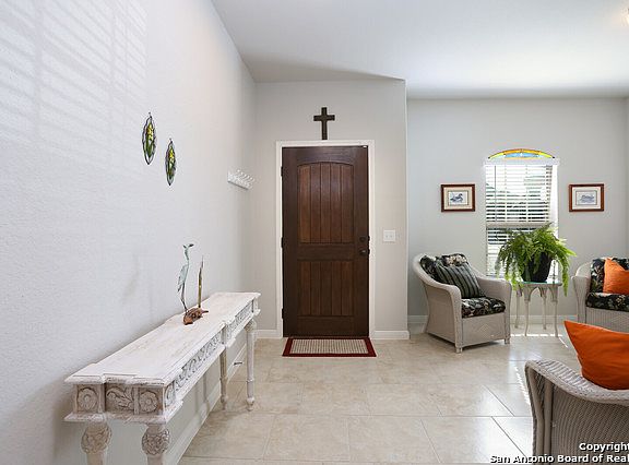 Brand-new one-story home in New Braunfels. Gleaming tile greets you upon entry of this beautiful home with a flex room upfront that can be living space, study, or dining room. Open kitchen and living with large granite island, 42" cabinets with hardware, stainless steel appliances and tile backsplash. Spacious Master with tray ceiling and a light and bright bathroom featuring an over-sized walk-in shower with inlaid tile. Backyard is generous in size and there is good spacing between neighbors. Great community with neighborhood pool right around the corner. Better than buying new since it is ready today and comes with upgrades like the blinds, back storm door and top of the line water softener. Come see it today!