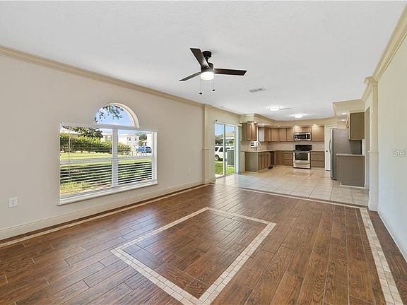 - Interior Features: Ceiling Fans(s), Eating Space In Kitchen, Stone Counters, Walk-In Closet(s), Crown Molding, Solid Wood Cabinets, Thermostat, Kitchen/Family Room Combo, Built in Features, Window Treatments, Vaulted Ceiling(s)