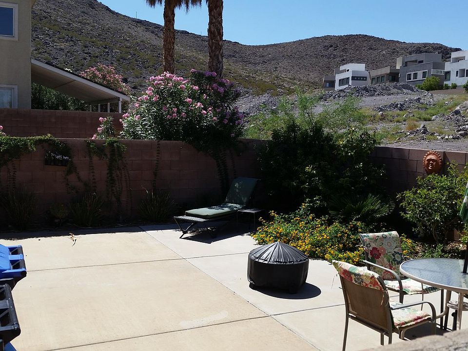 Sparkling 1st floor 1 story 2 bed 2 bath 1 car townhouse nestled in Black Mountain Vistas on a corner/end lot (very private). The community has 2 pools and is gated. Spacious open floor plan with inviting fireplace, generous well-landscaped backyard with patio and serene mountain views. Beautiful tile thru-out and two-tone paint. Extra-long driveway. Amargosa hiking trail runs along the back of the neighborhood, the entrance is directly outside of the community's side gate. 620 or better credit score and 3X rent income required. No pets. This rental as never been on market more than a week, don't miss out! NO PETS. 620 or better credit score and must make 3 x rent. Owner pays HOA, all other bills paid by renter. 1 year lease minimun, longer preferred.