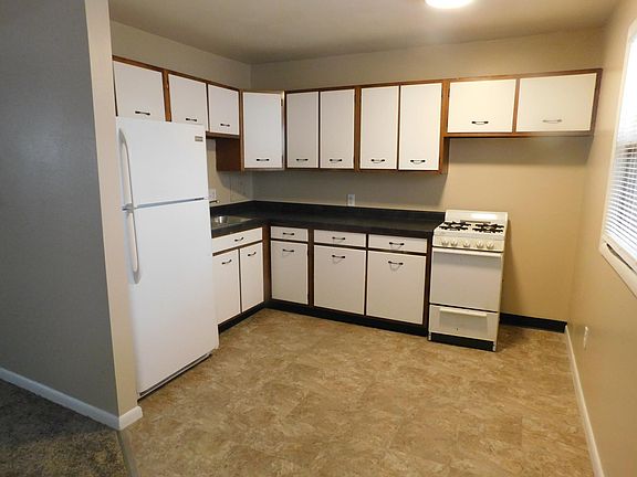 Cute two bedroom/one bathroom upper unit apartment located in an 8-plex bi-level building. This quaint apartment features new carpeting, fresh paint, an open floor plan between the kitchen and living room, a shared basement with separate laundry hook-ups/storage area, a nice back deck, along with off-street parking. Located close to the high school and Read Park. Garbage is included, no pets, $10 application fee, 2 year lease. Lease Term is for 2 Years. No Pets. $10.00 Application Fee.