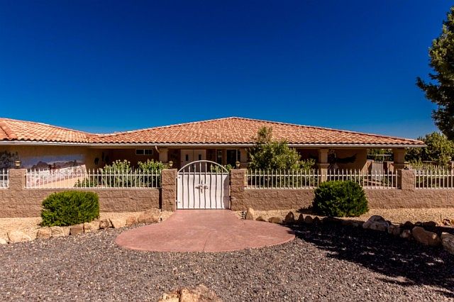 Cedar Ridge Estates Custom Built! Huge home sits on over 6 acres of beautiful desert landscape. Minutes to Kingman. Features and Upgrades: *Deep Well w/5000 Gal Tank*Coverd Metal Shed *AZ Room w/ 12 Ft Slider *Crown Molding *Corian Counters * Hickory Cabinets *HUGE Walk In Master Bedroom Closet *Cultured Marble Shower *6 Burner Stove *3 Car Garage *9'Insulated Door *2x6 Walls *Kitchen Nook *Built In Entertainment center *Rebar Runs Thru Foundation *400 Amp Service *Full RV Hookups *Open Floor Plan *Large Laundry Room *Marble Vanities *Newer Dishwasher *Solar Water Heater *Heat Pump *Water Softner *Window Shades *Dual AC/Heat with Air Filtration *Security System