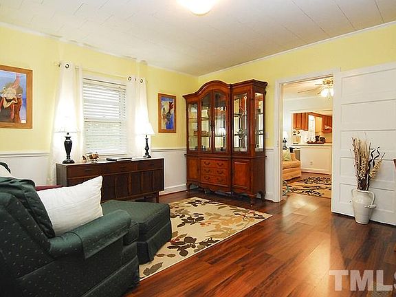 Charming bungalow home w/large front yard & porch. Driveway accommodates multiple vehicles. Inside features attractive new laminate flooring, tile, carpet and fresh paint. The large, eat-in kitchen opens to family room. The bathroom has several upgrades too. Back deck overlooks a large, semi-private, fenced-in yard (pets), HVAC < 1 yr, uses IRIS smart home system. Separate laundry room, no HOA, 2 mins to downtown Fuquay-Varina, 8 min to Holly Springs shopping. Country living with nearby parks and lakes!