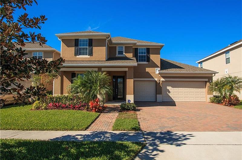 This beautiful home shows like a model. The Madison by Pulte homes has been a top seller since its introduction to the market. This 4 bedroom, 3.5 bath, 3 car garage home was 2012 built home offers a clean elevation and brick paved driveway as well as great views of Disney fireworks. As you enter the front door you will notice a big office perfectly located near the entrance to the home. As you walk towards the living area you will pass the formal dining area that has been tucked in the right spot for maximum floorplan flexibility. When arriving at the living/kitchen area you will notice the great room concept allows for the whole family to take part in the day's activities, from watching a movie together to cooking and entertaining in the kitchen area, allowing everyone to feel like they are part of the conversation. The master bedroom is perfectly placed on the first floor to allow for easy access. When heading to the second floor you see the nicely upgraded wood railings with wrought iron balusters. The second floor is very well planned with 3 beds and 2 baths as well as a huge game room for everyone to enjoy. The great lanai area creates a feeling of relaxation. whether you are a full time resident or looking for a vacation home within 10 minutes to Disney. This is a perfect home for you!