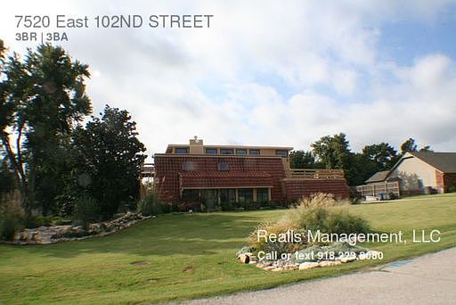 SCHEDULE A SHOWING ONLINE AT: showmojo.com/lh/7e2e745046 For showing call or text: 918-223-8080Beautiful contemporary large 3 bedroom (two up and master down) 2.5 bath 2 car attached with 2 space carport, 1.5 stories in South Tulsa. Additional loft office or bonus room with wall of built-in bookcases. JENKS school district, Jenks SOUTHEAST ELEMENTARY. Many extras and amenities such as operating greenhouse with heater and lighting, garden, work benches in garage and green house, heavy duty shelving unit in garage for extra storage, landscaped, irrigated and lawn treated by Lawn America. Large kitchen for cooking and entertaining with 9 foot island for eating around. Full 10 foot Monkey pod wood bar with sink, refrigerator and wine rack. Laundry room equipped with newer washer/dryer, utility sink and cabinetry. Kitchen and extra garage refrigerator are included in the lease of the home. New HVAC system 98% efficient with electronic filter and infrared air cleaner. New 2.5" wood blinds downstairs and in loft/den/study. HOT TUB on East patio with many patios and decks to retreat. Beautifully landscaped by professional landscaper with large limestone boulder retaining wall which incorporates a small disappearing waterfall surrounded by a rock patio seating area. Two large trees shade the area for much of the day. Wood floors in common areas, saltillo tile in the kitchen and downstairs half bath leading to the spacious two car garage with compressor and work bench. Lots of wood beams.House has many high-end lighting upgrades with dimmers, recessed can lighting, under cabinet lighting, security lighting and landscape lighting installed. House has been wired for four wall mounted flat screen TV locations with central built in AV cabinet in front room. Master bedroom and bar flat screen TV remain with the house. House has been wired with security system, telephone and cable. House has two living rooms one with 18 foot and the 2nd with 12 foot ceilings. Must see to appreciate. Entertainers delight. Pets OK (no fence). No smoking. Many built in shelves in loft/library and upstairs bedrooms. Close to shopping, dining, highway and Creek Turnpike Trails. Costco coming soon. 101st/Memorial area (walking distance).