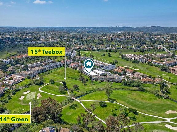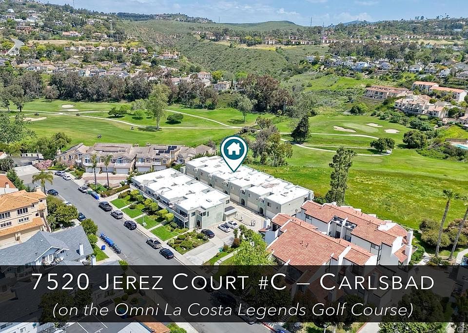 Rare 3 bedroom townhome over 2100 sf on the OMNI La Costa Resort's Legend Golf Course ** This Bridgeview unit is perched above the 15th teebox & offers gorgeous views out to the 14th green ** Fairway VIEWS from the Living room, Dining room, Kitchen, BONUS Office & Large Balcony ** Floorplan Specs: GROUND LEVEL = Family Room + 2 Guest Bedrooms + Full Bath + Full Laundry with plenty of storage + BONUS Niche #1 (gym, playroom, yoga) ** 2nd LEVEL= Living + Dining + Spacious Primary Ensuite with private balcony + Guest 1/2 bath + BONUS Niche #2 (office) ** Spacious & Sunny Balcony with sweeping golf course views (gas bib for BBQ) ** 2 CAR attached garage ** Freshly painted cabinets & interior walls ** NEW Dual-Pane Windows ** NEW A/C ** UPDATED Primary Bathroom with 2 Walk-in Closets + Private Balcony ** All conveniently located within minutes of Top-Rated schools (ENC UNION / SAN DIEGUITO), La Costa Towne Square (shopping/restaurants/movies), OMNI La Costa Resort, recreational hike/bike trails & less than 4 miles to the BEACH or downtown Encinitas ** The Carlsbad Village District is less than 8 miles to the North