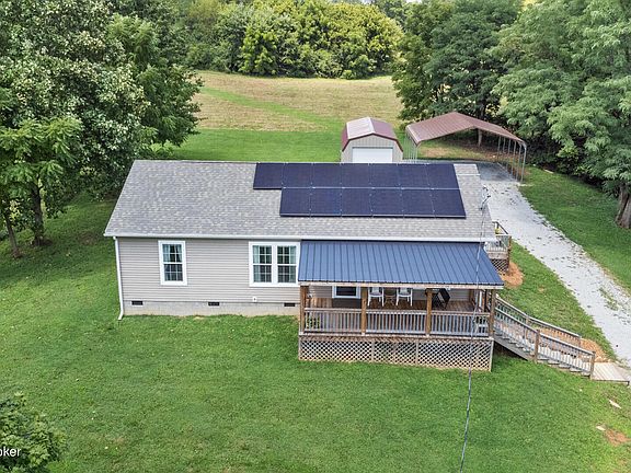 This beautiful 3 bedroom, 2 full bath manufactured home is only 4 years young! Sitting on 1.73 acres in highly desirable Crestwood, close to so much yet feels private & tucked away. Offering an open floorpan with abundance of natural light, you'll love the gorgeous kitchen with plenty of cabinetry for storage as well as mud/laundry room off the kitchen with access to a welcoming side deck which takes you to the large patio that spans the entire back of the home overlooking the beautiful, expansive lot. Attached solar panels greatly reduce the electricity bills! Large covered front porch deck welcomes you home! Out back you'll find plenty of storage with newer large shed/workshop equipped with electric and a large/tall carport, both only two years old.