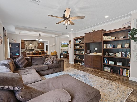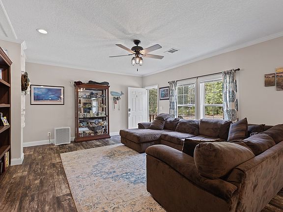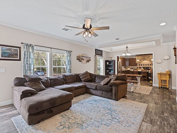 Gorgeous Destiny Custom Home located in Gilchrist County with an easy commute to Alachua County and Columbia County. This home has an oversized spacious floor plan, offering 4 bedrooms and 2 baths. Custom ceiling detail along with 9ft ceilings throughout. 2 livings rooms, one with built in cabinetry and one with wood burning fireplace, a large open kitchen with tons of cabinetry and gorgeous stone accents. Master bedroom offers tons of space with a gorgeous bathroom, large walk in shower, soak tub with stone accents , dual sinks and walk in closet. Additional bedrooms offer ample space all with walk in closets. A laundry room of your dreams, very spacious with soak tub , cabinetry and counter tops perfect for folding laundry or storage. A little over 5 acres perfectly wooded for privacy , surround by the country side. Back yard is fenced for fur babies. 3 sheds, (2) are 12x30 and (1) is a 14x30. This home is stunning and a must see to appreciate! Call today for YOUR tour!