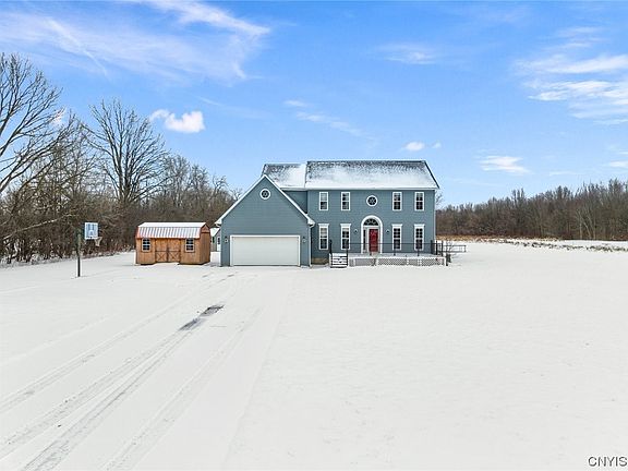 *** This is a CASH sale only *** This is an amazing opportunity for the right home buyer or investor. This 4 bedroom, 2.5 bath Colonial home sits perfectly on 2 acres of land in Canastota. The first floor features an open foyer, formal living room and dining room, a family room with a gas fireplace, a kitchen with quartz counters, a sunroom, pantry, 1st floor laundry room, and a half bath. The second floor provides a flex area, a spacious owner's bedroom with a coffered ceiling, walk-in closet, and a full luxury owners bath with high ceilings and a bonus/media room. There are 3 other good sized bedrooms and another full bathroom. The exterior offers a front porch/deck, large paved driveway, shed, and a private yard. Don't miss this great opportunity! **Proof of Cash Funds required before any showing**