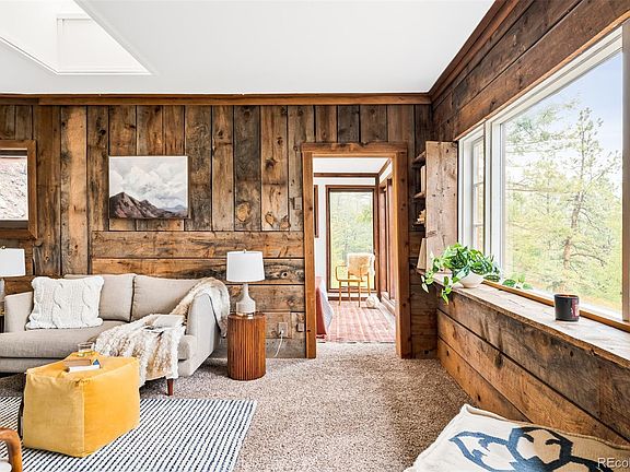 Engulfed in woodland splendor, this home offers a treehouse feel with easy access to Front Range amenities. Mountain driveway brings you to a lovely front concrete patio from which to relish in the surrounding landscape. Wander inside to find a living area situated beneath one of the home’s three skylights. Nearby, a kitchen makes excellent use of space with an expanse of beautifully painted cabinetry and stainless steel appliances. Resplendence is found in each bedroom escape — both of which offer gorgeous views through large picture windows encased in wood trim. The exterior has been recently stained to breathe new life into the cedar shakes and a newer roof ensures longevity. Total seclusion defines this treasured 1.6-acre hideaway; and combined with modern conveniences — such as a high-producing well and easy access to 285, Evergreen and Conifer — this home is a true oasis.