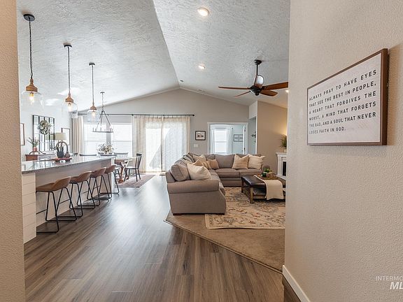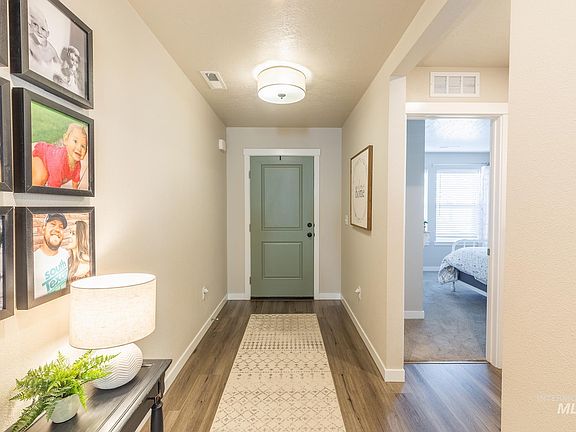 This gorgeous 3-year-old home in South Boise boasts 3 bedrooms, 2 baths, and an office/flex space. The spacious and open layout is perfect for entertaining and relaxing, with large windows that flood the living areas with natural light. The chef's dream kitchen features stainless steel appliances and ample counter space, while the master suite offers a large walk-in closet and en suite bath with a double vanity and soaking tub. This home has tons of upgrades to give it a custom look, including the exterior which was painted last summer. The 2.5 car garage is perfect for extra storage or hobbies! Outside there is beautiful landscaping with colorful bushes and flowers and stamped concrete curbing. The neighborhood has an elementary school within walking distance, beautiful walking paths and is only 15 minutes from downtown Boise! Call for a showing today!