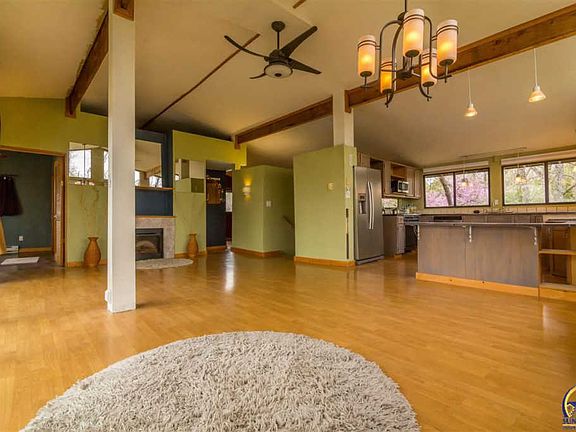 Amazing setting with bounds of opportunity in Washburn Rural on paved 10th St. Home is nestled among a beautiful treed setting. Open concept home with 2 living areas, 3 bedrooms with the potential for 2 additional bedrooms/bonus rooms, and lots of natural light. 3 acres with a beautiful walking path, fire pit area, and the peace of nature surrounding you with close access to town and interstate.