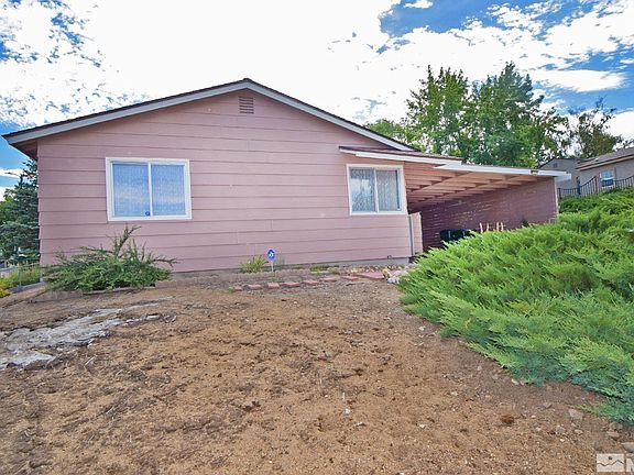 Welcome home to this charming home nestled in the heart of the sought-after neighborhood of Raleigh Heights. This spacious property, sitting on a generous third of an acre corner lot, offers a plethora of delightful features that will make you feel right at home., Inside, you'll be captivated by a decorative brick wall that adds a touch of elegance and charm to the living space. The living/family room is generously sized along with a separate dining area to gather. Just off the living room is a perfect area with a coat closet that can be used as a den or office space, ideal for working from home. The well-designed floor plan includes three inviting bedrooms, with the primary bedroom boasting an ensuite bathroom. A second guest bathroom is just across the hall for added convenience. The recently updated roof and stainless steel appliances add to the overall appeal and value of the home. With the refrigerator, along with a washer and dryer thoughtfully included (no warranties or guarantees implied), moving in and settling down will be a breeze. As you step into the backyard, you'll be greeted by a covered patio, providing the perfect space for outdoor gatherings and relaxation. Imagine sipping your morning coffee or hosting a barbecue with friends and family in this inviting outdoor space. This backyard is a true oasis, featuring mature landscaping that surrounds the property, complete with a shed for additional storage and a separate area for gardening enthusiasts. The long driveway provides ample parking space for multiple vehicles, a boat, or a trailer, catering to all your parking needs. And the best part - NO HOA, allowing you the freedom to make this home truly your own. Located just a short drive to UNR, downtown, and easy access to 395, you'll enjoy a convenient lifestyle.