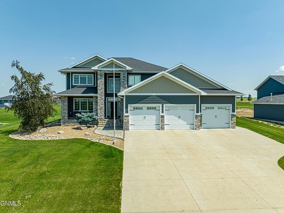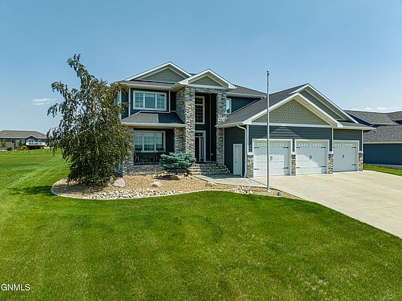 This stunning two-story single-family home is nestled within a prestigious Hawktree golf course development. With a total of 5 bedrooms and 4 bathrooms, this spacious residence offers luxurious living and a wealth of amenities. As you step inside, you'll be greeted by an open concept main floor that seamlessly blends the living, dining, and kitchen areas. A sixth bedroom or office is also featured on the main floor. This layout creates a welcoming and inviting space, perfect for both entertaining guests and relaxing with family. The main floor also features a screened patio, providing a serene outdoor retreat. Another patio in the backyard with a fireplace for more entertaining. The huge backyard is perfect for the entire family. Heading upstairs, you'll find four bedrooms, including a magnificent primary suite. The primary suite is a private sanctuary, boasting ample space, a walk-in closet, and an en-suite bathroom. Additionally, the convenience of having laundry hookups on the upper level makes chores a breeze. The basement of this home is thoughtfully designed to maximize comfort and entertainment. It includes a guest suite, ensuring that your visitors feel right at home. The basement also features a theater room, offering the perfect setting for movie nights and immersive entertainment experiences. Furthermore, the inclusion of laundry hookups in the basement adds convenience and flexibility. Overall, this two-story single-family home in the Hawktree golf course development offers a harmonious blend of elegance, functionality, and entertainment possibilities. With its spacious bedrooms, well-appointed bathrooms, open concept main floor, screened patio, basement guest suite, theater room, and laundry hookups throughout, it provides a luxurious and comfortable lifestyle for you and your family to enjoy. Home has been freshly painted. Carpet was added in the basement and bedroom upstairs. Seller is a licensed real estate agent in the state of North Dakota