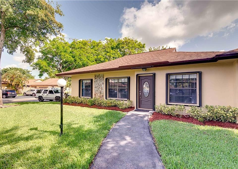 Gorgeous Villa-Condo design in Davie. This 3 bedroom/2 bathroom unit features a newly updated kitchen with quartz countertops and brand new cabinets. Updated laminate and tile floors throughout with both bathrooms featuring upgraded vanities and fixtures. Huge primary walk in closet and ample storage throughout including a bonus storage space off of the patio. AC is 2017 and water heater is new within the last year. Association fee includes roof coverage and cable/internet. 2 Open parking spaces with plenty of guest parking. The community has a large and beautiful pool/bbq/tennis area. This unit is close to shopping, restaurants and Nova University. 3 year rental restriction for the community.