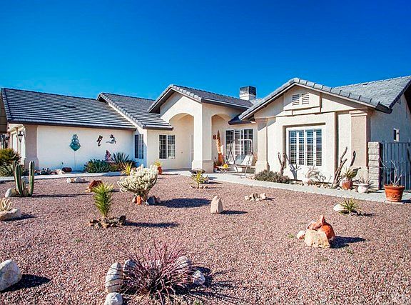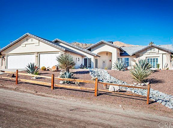 Live in luxury & style with this remarkable view property, perched nicely in Country Club area of NW Yucca Valley. Views to snow covered San Jacinto and across all of the western Morongo Basin. This immaculate & beautiful home features tasteful upgrades and well-appointed amenities, put together with a fantastic floor plan and wonderful flair. One will marvel at the granite counters in kitchen, bathroom, fireplace area, large plantation shutters on all windows, incredible color palette, a newly remodeled formal dining room with French doors, forced central heat & air, natural gas for cooking, heating, and an outdoor built-in barbecue in patio area with top-quality salt-water spa! Plenty of room for boats or RVs on the side yard and extra storage in utility shed, a 3-car finished garage with auto-openers on both doors. Just a quick drive to shopping areas and schools, and a jot to the low desert from this superior location, this property will impress anyone who sees it. Easy to show--come see today!