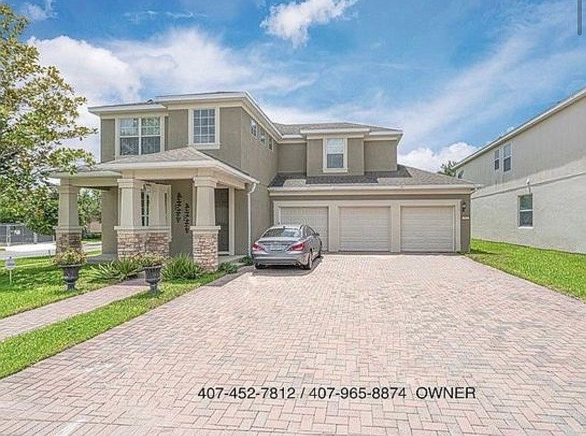 Energy Efficient house on a corner lot in Windermere's very well located community Berkshire Park. Featuring SOLAR PANELS that will save you money, this 4 bedrooms, 3 1/2 bathrooms, 3 car garage house also features an open-concept kitchen with stainless steel appliances, granite countertops, 42" wood cabinets, pantry fully integrated with the family room. The living room is luminous and spacious. The studio is on the first floor. The huge master bedroom has a walking closet and a large bathroom with a shower and bathtub. The second bedroom also enjoys a private bathroom. The third and fourth bedroom share a Jack and Jill bathroom. The laundry room is on the second floor. From the enormous screened lanai you can enjoy the beautiful back yard and enjoy the afternoon breeze. This house is in a very coveted "A" rated school district. The high school is the Windermere HS. Close to attractions, movie theaters, theme parks, malls, shopping centers, main roads and highways, Publix, etc., this property won't last in the market. Buyers realtor commission 2.5%