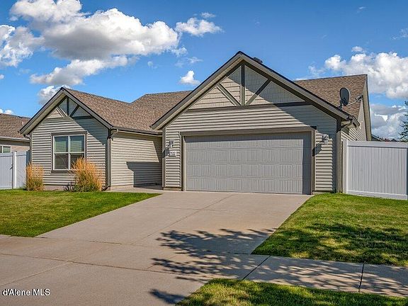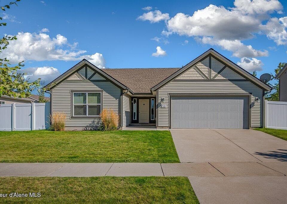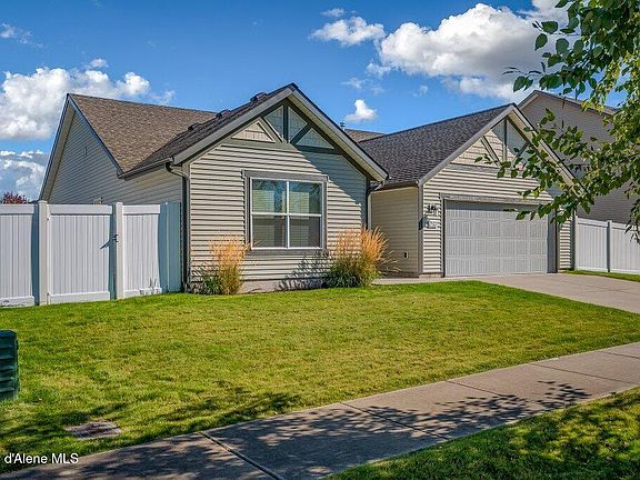 Meticulously maintained split-bedroom charmer in Landings at Waterford! Open-concept kitchen boasts upgraded cabinets, center island, and a spacious pantry—perfect for entertaining. The inviting great room offers a comfortable gathering space, while the private primary ensuite w/soaking tub provides a peaceful retreat. Versatile 3rd bedroom with double doors off the entry duals as a great office or guest space. Step outside to a fully fenced, landscaped yard with an oversized patio ideal for outdoor dining and relaxation. Close to parks, schools, and everything Coeur d'Alene has to offer!