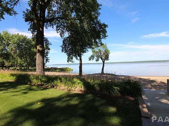 Million Dollar Views and Private Beach. Beautiful riverfront property located in Upper Peoria Lake. Key features include kitchen with corian tops, large island/breakfast bar and pantry, porcelain tile, wood floors, spacious master with ensuite and walk in closet, enclosed under deck offering extra storage, 2 fireplaces, 3.5 baths, oversized 2 car garage and carport. Updates include windows, roof, and 3 tier deck with glass rails. See this incredible home today!
