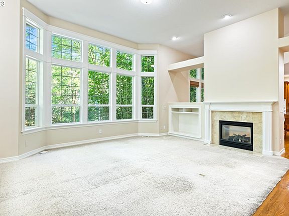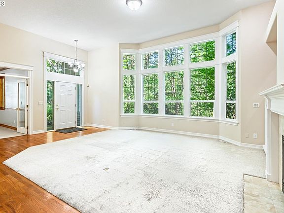 Exceptional Single Level Living Nestled in a Tranquil Wooded Setting. Upon entry, enjoy soaring ceilings with floor to ceiling windows throughout the open living room with double sided gas fireplace. Flowing and accessible floor plan. Enjoy Double glass door den that could be converted to third bedroom. Nook sitting room opposite living room with built in bookshelves and entertainment center. Beautiful vaulted ceiling primary with fully accessible bathroom, large walk-in closet, and designer paint colors. Beautifully appointed kitchen with windows overlooking peaceful wooded surroundings. large granite tile kitchen island with gas cooktop range, dining area featuring double sided gas fireplace, oak hardwood floors, and glass door leading to back deck overlooking the wooded yard, greenspace with creek area opposite the side yard. Corner lot features peaceful wooded landscaping, and low maintenance yard care with large, partial wrap around deck. HOA maintains front and side yard! Luxurious and desirable Woods Creek Neighborhood. Great living with all Canby Village and Garden Home has to offer, including great shops, recreation, restaurants, parks, and paths. [Home Energy Score = 5. HES Report at https://rpt.greenbuildingregistry.com/hes/OR10219802]