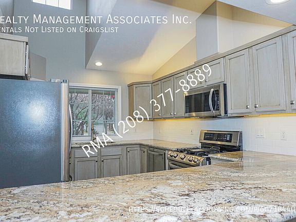 This immaculate 2 bedroom/2 bath townhouse is located off Cole Rd north of Ustick Rd. Home features open floor plan with vaulted ceilings and a beautiful stone wall highlighting the gas fireplace and mantel. Kitchen features high end gas range with two ovens, french door stainless steel fridge, stainless steel microwave and dishwasher. Skylight in the kitchen allow a lot of natural light. Washer and Dryer Hookups. Master bedroom features walk in closet and master bath. Tile floors and back splash in bathrooms, master has a large tile shower. Fully fenced backyard with a patio area perfect for entertaining. HOA maintains the front landscaping! 2 car garage with lots of shelving for storage. 12 Month Lease and Property Liability Insurance Required at Move In. Tenant is responsible for all utilities. A $80.00 flat fee is paid each month with rent for sewer and trash. NO PET PROPERTY! This property is located in the Solano Park Homeowners Association and subject the rules and regulations of the HOA. For questions about residential rules including trailers, parking, ect. please reach out to the HOA management: Solano Park Property Management