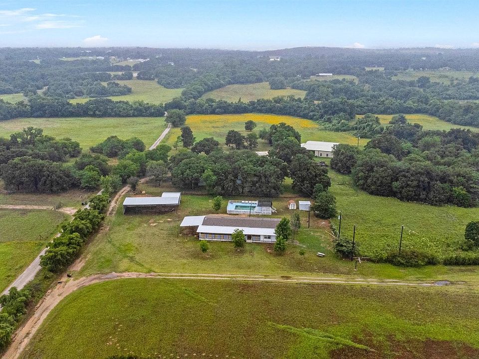 This is the perfect property for a large family to spread out. This 2 acre lot features three homes. The main house has 4 beds, 3 bathrooms, a large covered front porch and carport. There is an oversized kitchen and dining, as well as an open living space with an additional bonus room off the master suite. The second home is 872 sq ft, needs a little TLC but has its own septic system and well. A perfect fixer to rent or use as a mother in law suite. This lot comes with covered RV storage, 200amp hook up, a 20 x 20 Shop, 2 wells, an above ground pool, with metal decking and multiple sheds. There is an additional tiny home on site that is new in sheetrock phase and be customized to fit your needs. Enjoy quiet country living with mature oak trees nestled back 940 ft from a main road. NO HOA, No Deed Restrictions. This is the perfect place to call home.