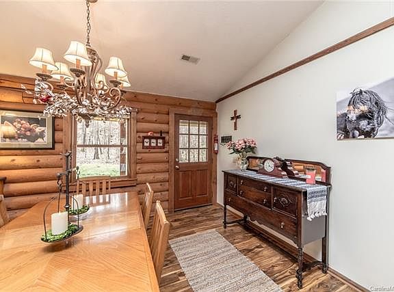 This charming log home, nestled on 2.5 acres of wooded property, has all you need to enjoy an escape from the hustle and bustle, but is close enough to enjoy all that popular, historic Waxhaw has to offer! The possibilities are endless: Enjoy the scenic view from your expansive, covered front porch, Curl up near the wood stove with your favorite book or Invite over your favorite group of people to enjoy a large bonfire in a generous clearing at the side of the property. The detached, oversized 2-car garage is insulated and has electricity for those of you who enjoy passing time in a spacious workshop. The kitchen and both bathrooms were recently updated, along with the flooring in the main living area. There is a large room across from the Master Bedroom that could serve as an office,bonus room or whatever fits your needs. Nature is at your doorstep - come fall in love!