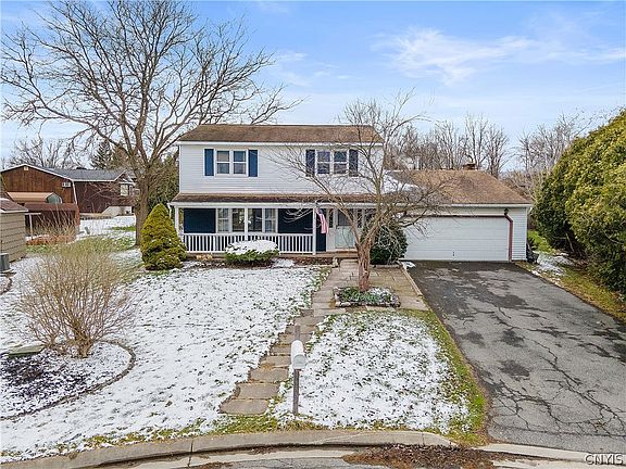 DON’T MISS YOUR CHANCE TO SEE THIS STUNNING CLAY COLONIAL! Nestled on a lovely cul-de-sac, this darling suburban home boasts over 1,900 sq ft of living space. The charming open porch invites you as you enter into a welcoming foyer of the attractive main level. A large formal living room beside the foyer leads to a bright dining room and then ample remodeled kitchen with eat-in space and brick accents. Sliding barn door opens to an oh-so convenient 1st floor laundry/pantry area and backyard access. Massive rear family room features brick fireplace & hearth, plus large slider also out to back patio & deck. Upstairs, 4 generous bedrooms, including a primary bdrm and en suite bath, and a tasteful hall full bath (both newly remodeled). And don’t miss the amazing walk-in closet recently added as well! Large basement for storage, workout space, etc. plus a 2-car garage complete the tour of this delightful home! Just minutes from shopping, dining and highways. Make this treasure of the CNS school district YOURS to enjoy for years to come!**Offer deadline set for Monday at 12pm.
