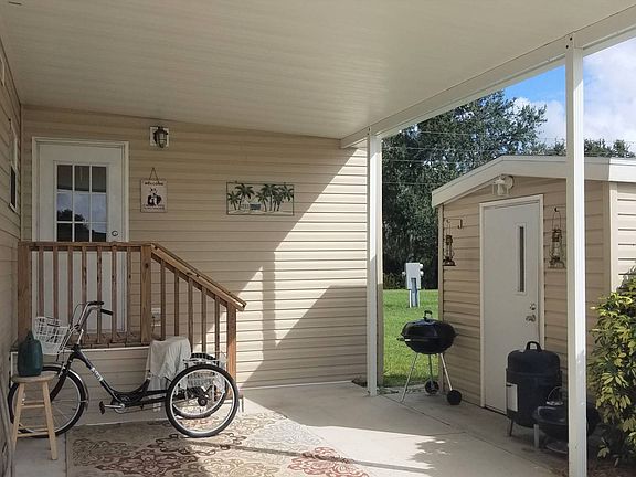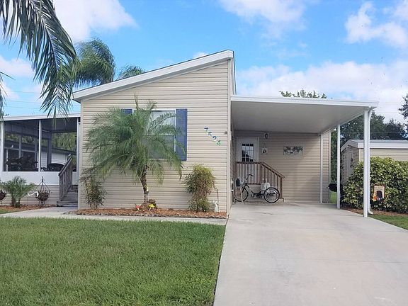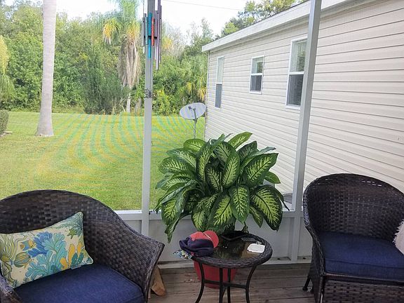 REDUCED $41,000 Turnkey This home is only 7 years old and comes turnkey. Long side driveway, carport and storage shed. As you enter the home you step in the large living room. The vinyl flooring in the living room is new 2020. The living room opens up to the eat in kitchen. The kitchen has updated countertops, sink and faucet. Plenty of cabinet and counterspace. The guest bathroom has a tub/shower combo and a large vanity with storage underneath. Inside laundry room tucked away by two bi fold doors makes it very convenient to do your laundry. All 3 bedrooms are spacious with closets. The ensuite master bathroom has a step-in shower with sliding glass doors. The side screened lanai makes it a perfect spot to enjoy your cup of coffee in the mornings. This home is in a great location on Kings Dr. Large back yard with no neighbors behind you. The home also comes with a rain water softener system. Priced to sell, so call today to make this your Florida dream home! ACT FAST & CALL TODAY!! Don't forget to ask about the BANK FINANCING available on this home. Colony Cove is an age qualified (55+) five-star resort community of manufactured / mobile homes. The "Cove" boasts 5 clubhouses, 5 heated pools, a riverfront pavilion and private fishing pier, a private marina, a fenced dog park (very pet friendly), tennis, shuffleboard, new pickleball courts, 2 new fitness rooms, 24-hour patrol, clubs for every interest, and much more. There are daily planned activities throughout the park. Bottom line, if you get bored here, it's your own fault!! The lot rent in Colony Cove is based on the homes' location. While the monthly rent may not be the lowest around, it's by far the best value for the money. Not only does the monthly rent cover all of the amenities of the community listed above, it also covers almost all other monthly expenses such as; water, sewer, trash pickup, all property taxes, lawn maintenance. . .pretty much every monthly expense except electricity. The current lot rent on this home is estimated at $838.68 per month. All listing information given to us is considered appropriate and reliable but always recommend Home Inspections by independent companies who have a background and thorough understanding of manufactured homes. We cannot guarantee the accuracy of information given to us or the condition of the home. Lot rents are determined by the community office not our company.