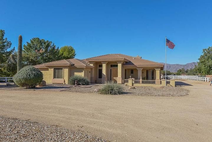 Sellers are EXTREMELY motivated to sell ASAP. Enjoy the romantic Southwest & mountain shrouded sunsets. Belong to a horse-friendly community. The home is well-appointed & great for entertaining. If you want everything that the Southwest has to offer, this home is for you. Just a few of the amenities are a 6' Jetted tub, Sound system & Ceiling fans throughout, High Ceilings, Dual walk-in closets, Office/Den, Walk-in Pantry, Roll-up Sun Shades, Cultured marble vanity tops & surround shower, Corian Kitchen countertops w/integral double sinks & under-cabinet lighting, Master bedroom sitting area, Iron gates, Utility sink & cabinets, Six shed-row lighted/covered horse stalls w/water, lighted round pen, enclosed & lighted tack room, horse bathing station, extra length garage, shaded RV parking.