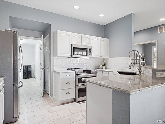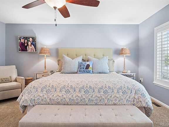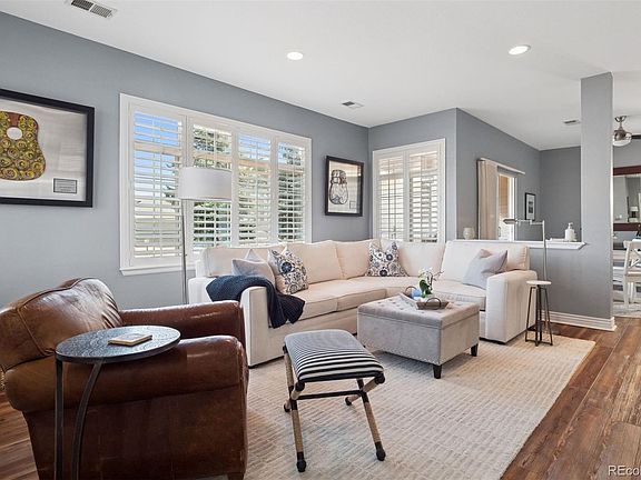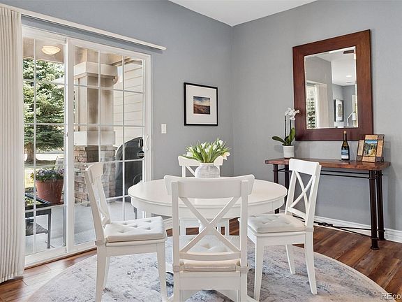 Discover effortless living in the highly desirable Pineridge community of Castle Pines, nestled beside The Ridge Golf Course and overlooking the scenic beauty of Daniels Park. This impeccably updated end-unit townhome offers the perfect balance of tranquility and modern comfort. Step inside to find a thoughtfully renovated interior where timeless design meets everyday functionality. The kitchen has been enhanced with fresh white subway tile, beautifully complementing the existing slab granite countertops, stainless steel appliances, and white cabinetry with pull-out drawers and updated hardware. A new GE Cafe induction stove and convection double ovens bring elevated performance and sleek efficiency to this stunning culinary space. The inviting living room centers around a modernized stone gas fireplace, while plantation shutters and 5” luxury vinyl hardwood flooring add a touch of refined elegance throughout. The main level features a secondary bedroom with a walk-in closet and a fully remodeled bath, plus a dedicated office complete with a custom Elfa built-in desk—ideal for working from home. Upstairs, the spacious primary suite offers a true retreat with two generous walk-in closets, including one with custom Elfa shelving, and a spa-inspired bath featuring granite counters, dual sinks, and a walk-in shower. The included stairlift system ensures the upper level remains easily accessible for all. Additional conveniences include a 2020 HVAC upgrade (furnace and AC) controlled by an Ecobee Nest thermostat. Outside, the current owners have refreshed both garden beds and created a peaceful escape on the private side patio off the kitchen. The HOA has taken great care of the community with a new roof in 2019, and fresh exterior paint completed in summer 2024. Enjoy sweeping views of Castle Rock and Pikes Peak in this exceptionally quiet and well-maintained neighborhood, just minutes from trails, golf, shopping, and I-25. This is more than a home—it’s a lifestyle.