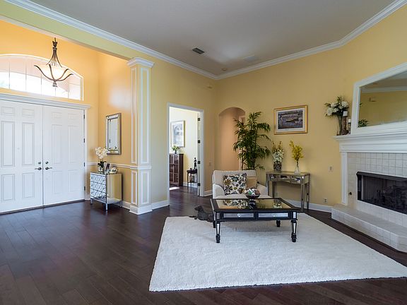 Elegant John Cannon home with captivating curb appeal and elevation. Double entry doors. Impressive wood and column detailing. Tile and wood flooring throughout. Amazing windows that create a bright, open and refreshing look. Gourmet kitchen with brand new stainless appliances. Gas cooktop, granite countertops, custom cabinets, large prep island. Soaring high ceilings. Living room has cozy fireplace. Breakfast area with built in bench with aquarium glass window. Huge gathering room. Pocket sliding doors. Office overlooks lake. Five spacious bedrooms. Intimate owner's retreat with wood flooring, two walk in closets, owners bath has center tub, walk-in shower, vanity and two sinks. Glorious pool, spa and grand lanai area. Great sunning area. Enormous upstairs bonus room with private lanai and gorgeous peaceful lake view. Large yard. Close to ODA. Welcome home!