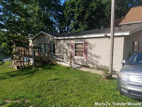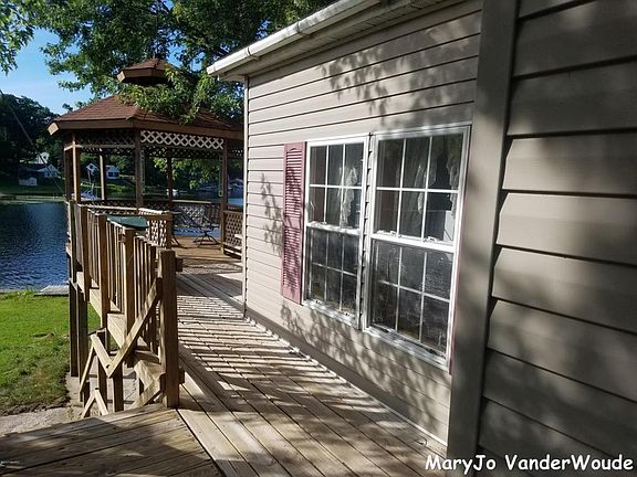 Great double wide modular with 1669 sqft. 2 full baths, jetted tub, large easy access shower, ceramic floor & sky light in master bath. Beige carpeting in family room, formal dining & bedrooms. Laminate wood in living room & 3 walls of windows overlooking the lake, gazebo & decking. Kitchen & 2nd bath with cream vinyl flooring. Full basement under with double door access from yard (no access from inside home). Sits on all sports Crooked Lake with 735 acres of year around fun. Newer roof & furnace.