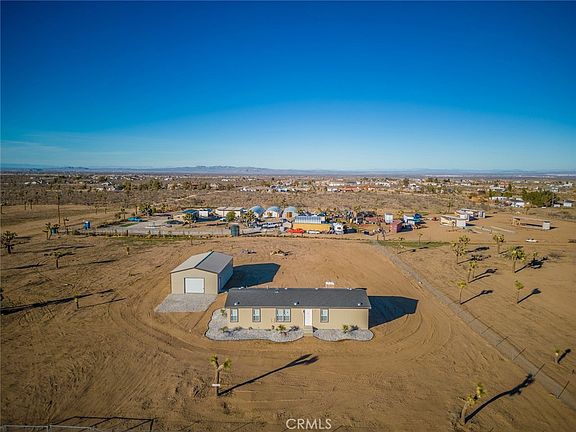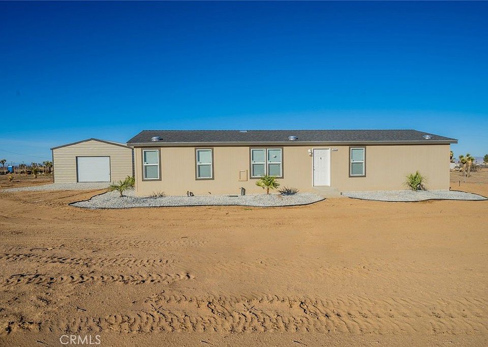 BRAND NEW 2022 Manufactured Home on permanent foundation with BRAND NEW LARGE STEEL BUILDING!! This new home is 1306 square feet with open/split floor plan! High ceilings throughout the interior, White Whirlpool appliances, refrigerator is included, recessed lighting, vinyl flooring, and separate dining room area is adjacent. Double pane Low-E windows, central air conditioner, interior panel doors, Master bedroom has Large Closets, lots of cabinets, additional shelves for storage and separate laundry room with interior door that leads to the backyard. This has plenty of room to park your toys, trailers, additional vehicles. Builder has also done drought friendly landscaping. Snowline School District, Low property taxes, and qualifies for FHA financing, VA financing, Conventional Financing. Make it yours today!