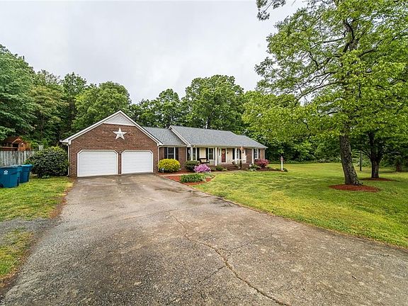 Country living at it's finest! Picture prefect brick ranch home situated on 1.4 acres with Rocking Chair front porch in convenient location, minutes from the town of Oak Ridge with Kernersville mailing address. Great floor plan offers formal living and dining separated by sliding barn doors. Spacious kitchen with built in window seat, updated granite counters and backsplash, neutral flooring, and SS appliances. Updated granite in the baths, fresh paint and carpet throughout. The large den has vaulted ceilings and a fireplace. Backyard with large deck and privacy fence. This beautiful home is USDA eligible and won't last long, schedule your showing today!!