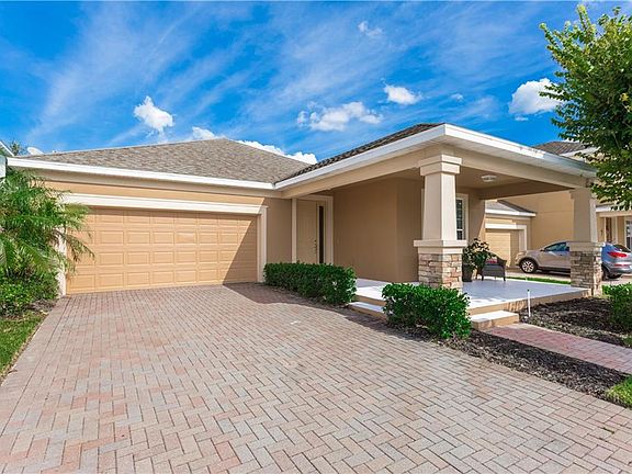 Are you looking to save money on your next home purchase? Great news, this home qualifies for a no closing costs loan! This beautiful Plymouth floor plan located in the sought-after community of Lake Sawyer awaits you! The pride of ownership shows from the moment you walk in the door - you will notice the engineered hardwood flooring throughout the main common areas and a soft color palette to compliment everyone's taste. You'll love the great open living space in the kitchen/family room combo. Kitchen boasts granite counter-tops, 42 inch cabinets, Sleek appliances, a cozy breakfast nook and a built in dry-bar. From the Living room through the sliding glass doors you welcome the screened and covered Lanai great for relaxing and viewings of the nightly fireworks. The Owners suite has laminate floors and a large walk in closets with built in features. Owner's bath includes dual sinks with large walk-in shower and a garden bath tub. Two additional bedrooms share a nicely appointed bathroom. This home is equipped with Solar Panels, making this home energy efficient and money saving! The Community features a resort style pool, playground, bike path, walking paths, conservation views and low HOA fees at $115 per Quarter. Near shopping with easy access to major roads. All located minutes to Disney, shopping & highly rated schools.