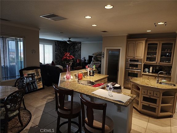 Incredible View Home i Oak Hills, California*sitting on hill top on 2.5 acers of land fully fenced, block block wall wrought iron and 3 rail fencing. Custom Gates, Granite countertops through out*Custom Cabinets throughout*Stainless Appliances including commercial Refrigerator and wine cooler*Quality fixtures everywhere*Wood burning stove in Family room*Formal dinning room*Granite in Kitchen, laundry, and bathrooms* 4 car garage totally finished*Barbeque Island*AC and Evap. Coolers* A must see.