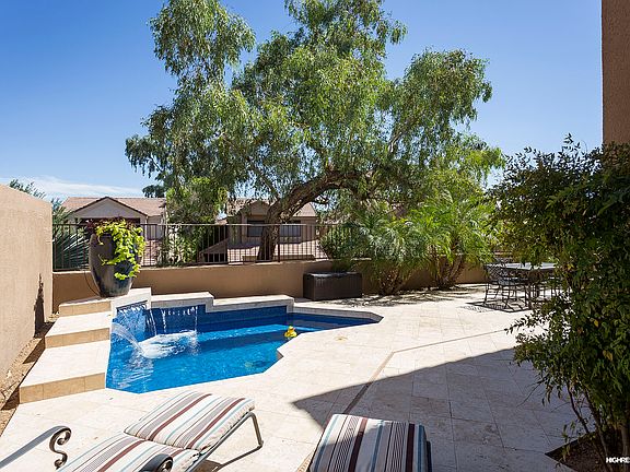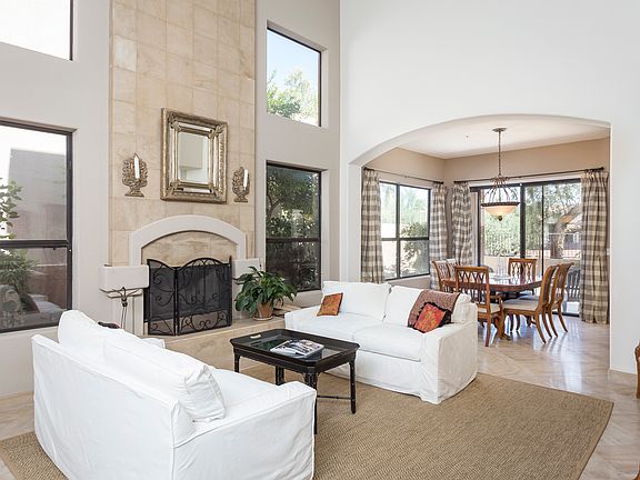 Elegant remodel in the Greens at Gainey Ranch. The home is situated on an elevated corner lot with natural gas cooking, heating, water heater, spa and fireplaces. Upgraded features including wood and French limestone flooring, updated cabinetry, beautiful fixtures and much more. Kitchen has granite counter tops, updated appliances and opens to the family room and breakfast area. The living room has soaring ceilings, a gas fireplace and is open to the dining room. You will love the master suite with a sitting area, two-way fireplace, and large custom walk-in closet. The loft is adjacent to two guest bedrooms and full bath. An office/den is downstairs with powder room. Lovely yard with spool, water feature and citrus trees. Walking distance to Estate Club w/ tennis, fitness center & pool.
